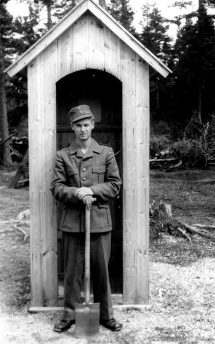 4. 21 år gamle William Thingsrud fra Strømmen på vakt i AT-leiren på Røa i Vormsund i 1943.