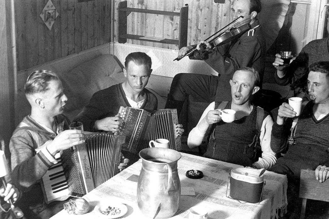 6. Tyske soldater har festkveld med sang og spill i Runni leir på Årnes.