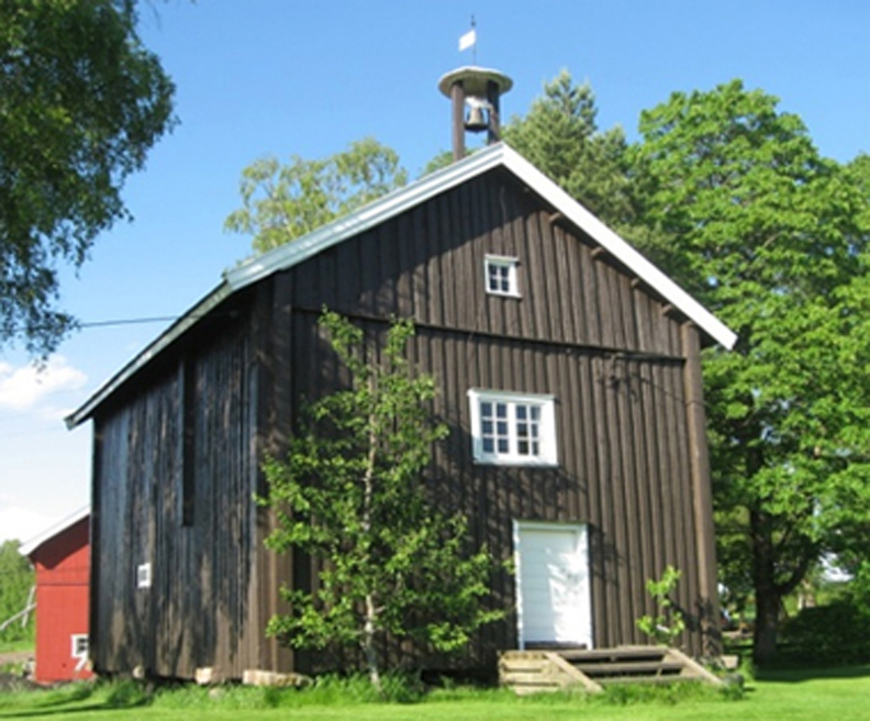 Bildet er av bua på Søndre Sørum med klokketårn.