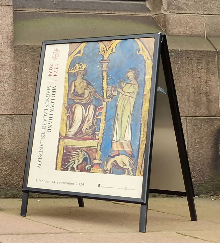 Nasjonalbiblioteket har laget en meget flott utstilling om Landslovas «far» Magnus Lagabøte. Og vår dyktige og kunnskapsrike omviser Ole-Albert Rønning Nordby gjorde historien svært levende, og ga en grundig og god innføring i hvor viktig denne loven fra 1274 har vært. At den markeres med egen utstilling og sjeldne lånte bokskatter 750 år etter, forteller sitt.