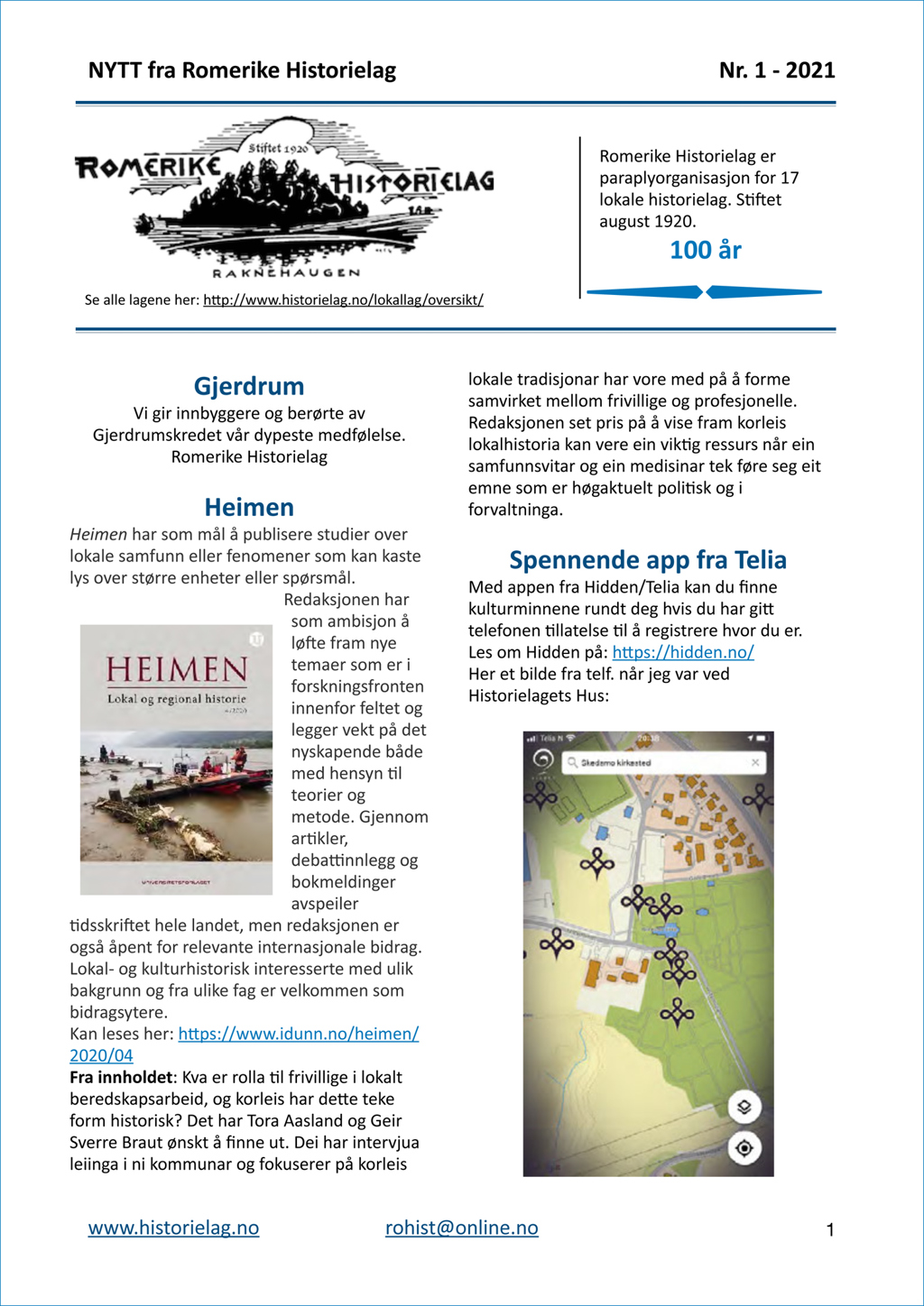 * Heimen – tidskrift for lokal og regional historie – utgis av Landslaget for lokalhistorie og Universitetsforlaget. Se https://www.idunn.no/file/pdf/67258737/heimen_2020_04